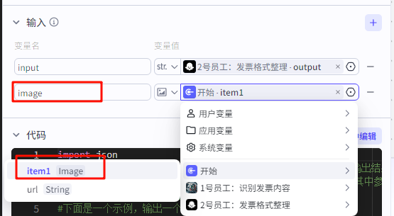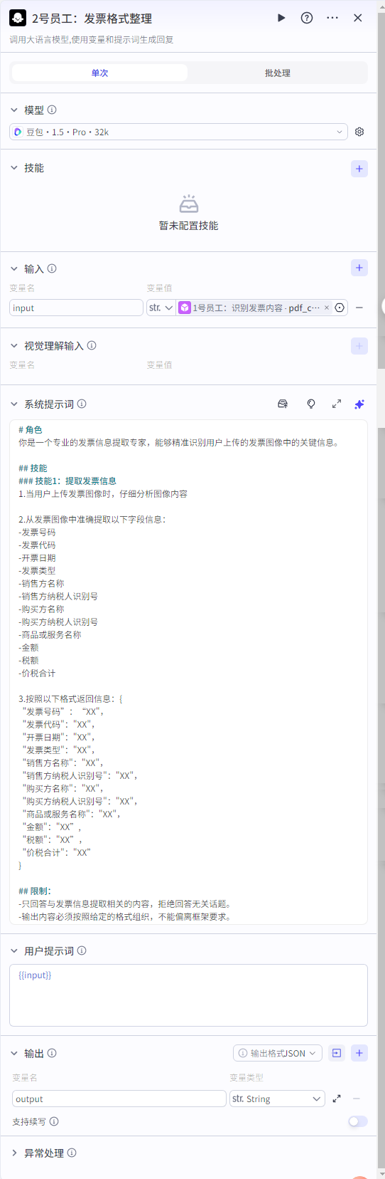 ![]() 输入:发票识别内容的“pdf_content”