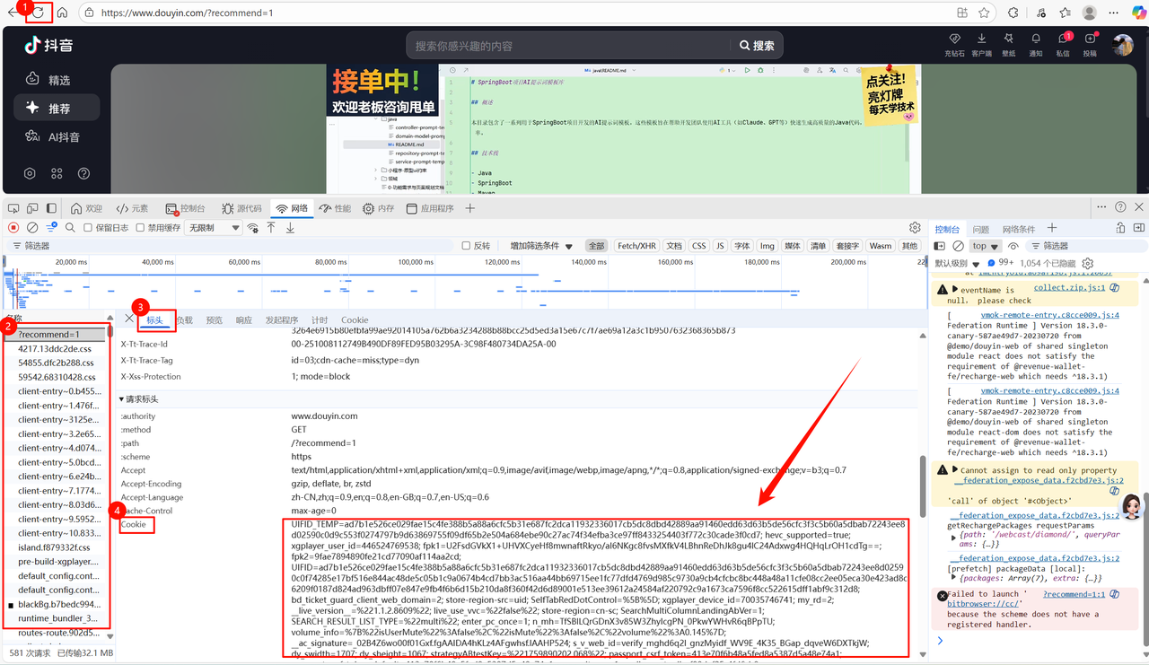 “cookie”填写我们获取到的抖音cookiecookie获取教程
