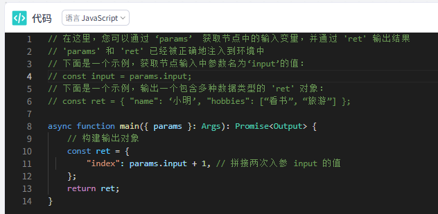 也就是实现我们在输出index的时候,每个index都需要+1,这个时候我们就可以通过代码节点去实现