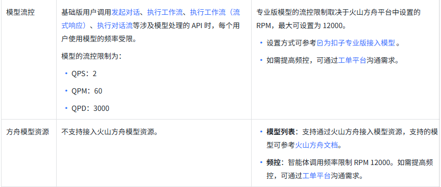 但Coze还有基础版和专业版之分,不过基础版是免费的,对于个人开发者而言,基础版是完全够用的