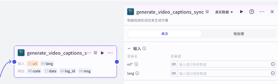 然后使用【字幕获取】插件的“generate_video_captions_sync”,完成对下载好的视频进行文案提取
