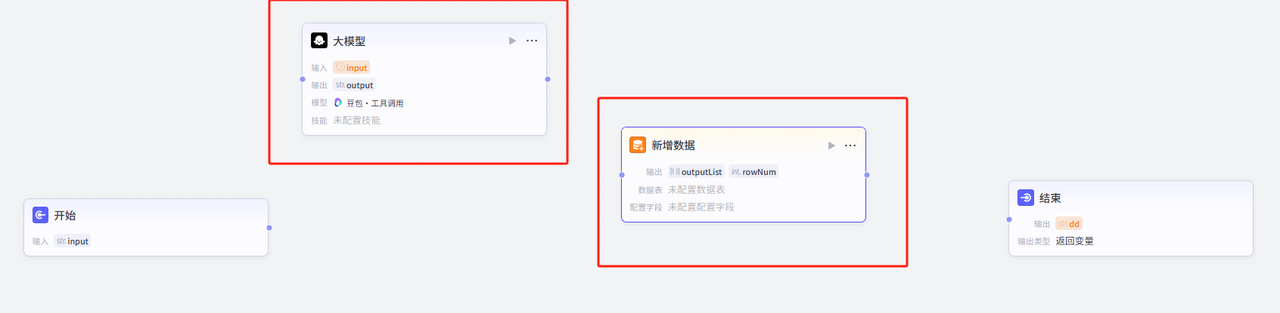 比如我们先设置一个新增数据的工作流,在前面再增加一个大模型节点