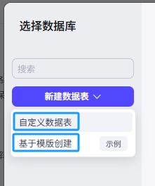 可以看到这里有两个选项,一个是自定义数据表,一个是基于模板创建