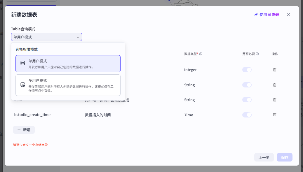 单用户模式:你现在创建的智能体表格,每一个智能体的使用者都有它自己的表格,并且它只能够查询自己的表格