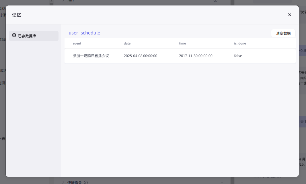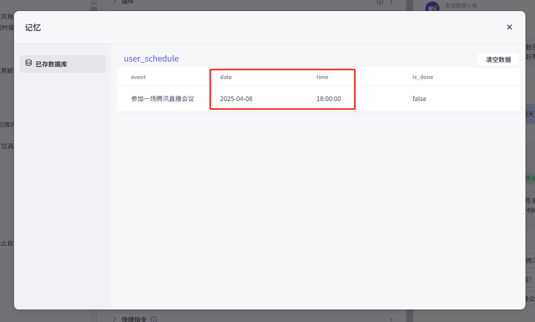 那么以记录日程为例,我们给大家讲解下如何在Coze平台建立和使用数据库