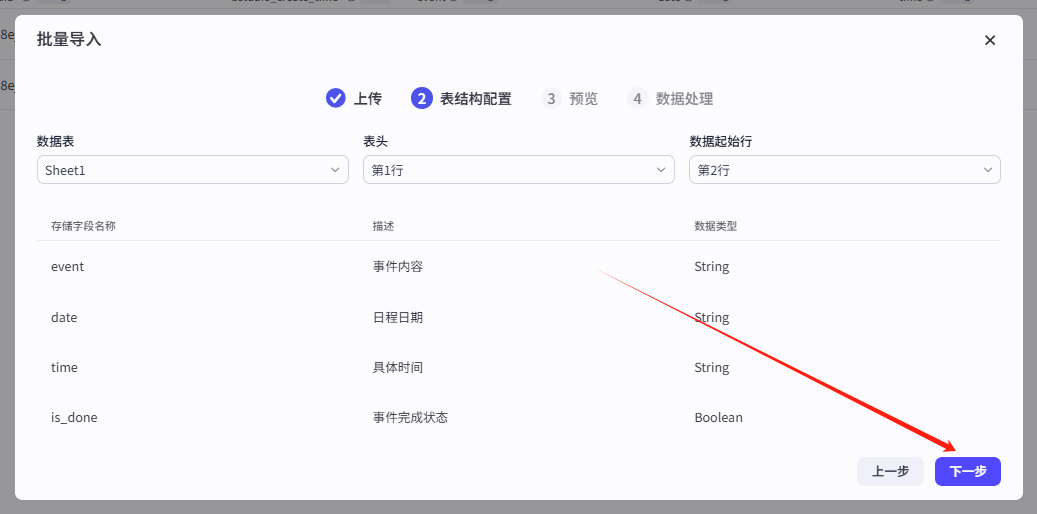 第五步需要对表结构进行对比配置,如果使用的是默认的模板就不需要更改,直接点击下一步即可
