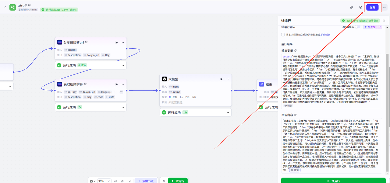 想要让智能体的工作流生效,一定要在这里点击发布哦