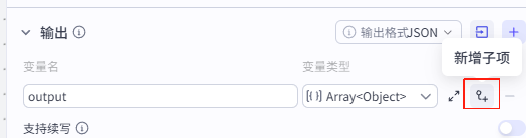 输出要选择变量类型为“Array<Object>”,因为导入多维表格的数据只接受这个类型的变量