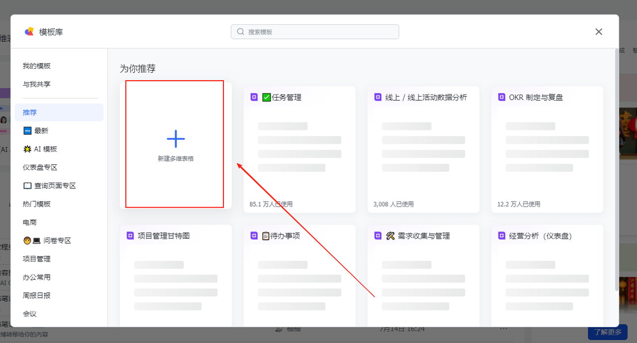 在插件市场搜“多维表格”,这个插件注意选择官方的