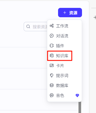 在coze主页“工作空间”中点击右上角的“资源”,选择“知识库”