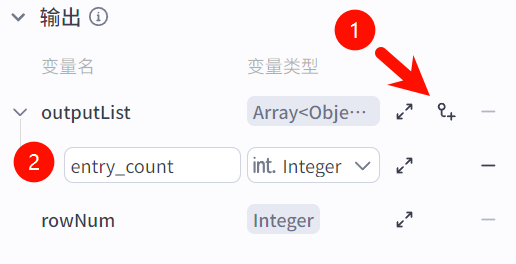 在输出项目中,我们要添加一个子输出项,即代码里写到的entry_count项,变量类型选择int