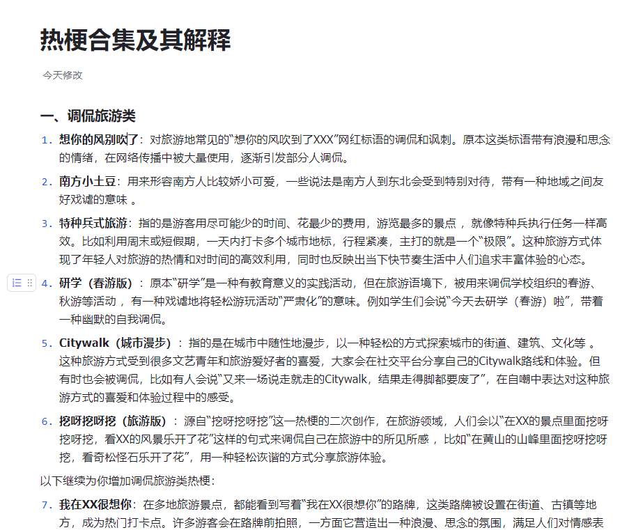 - 旅游咨询→调用"特种兵式旅游"/"Citywalk"
