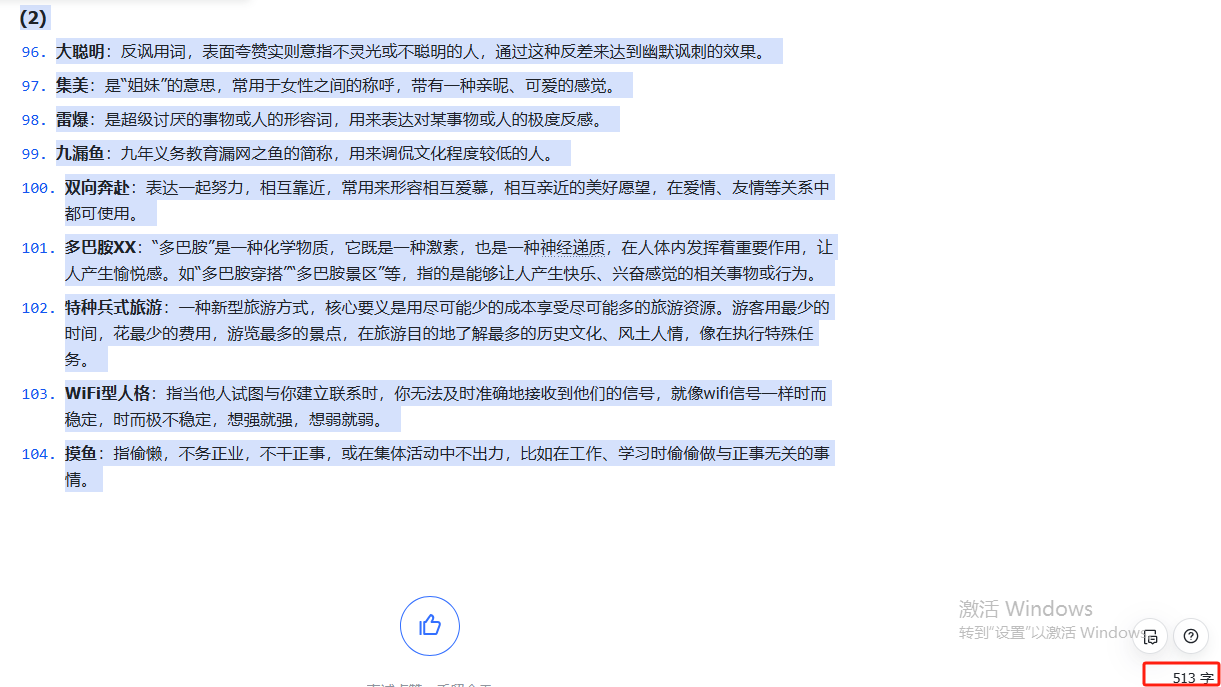 我们设置这个知识库的目的是,希望智能体只调用知识库内的热梗,我们使用DeepSeek帮助我们优化一下
