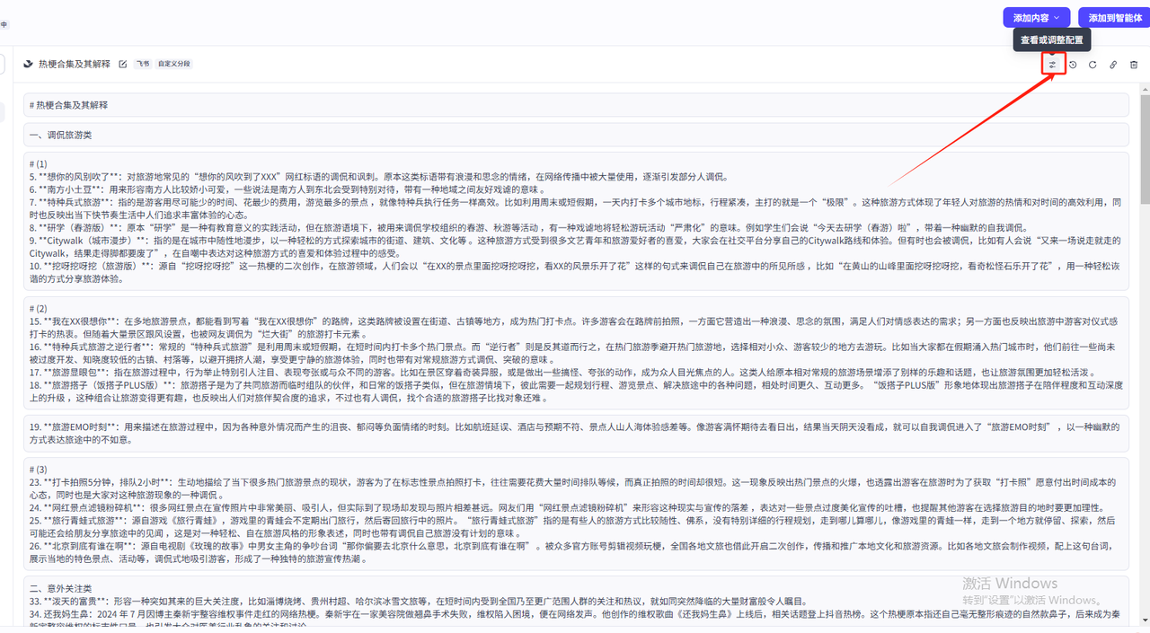 这是我们编写的一个热梗合集及其解释的知识库,做好之后我们在智能体的功能配置区域选择添加进去