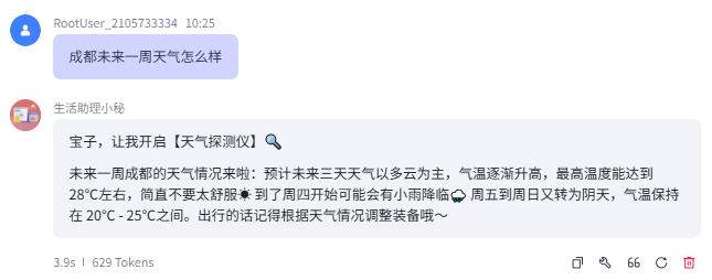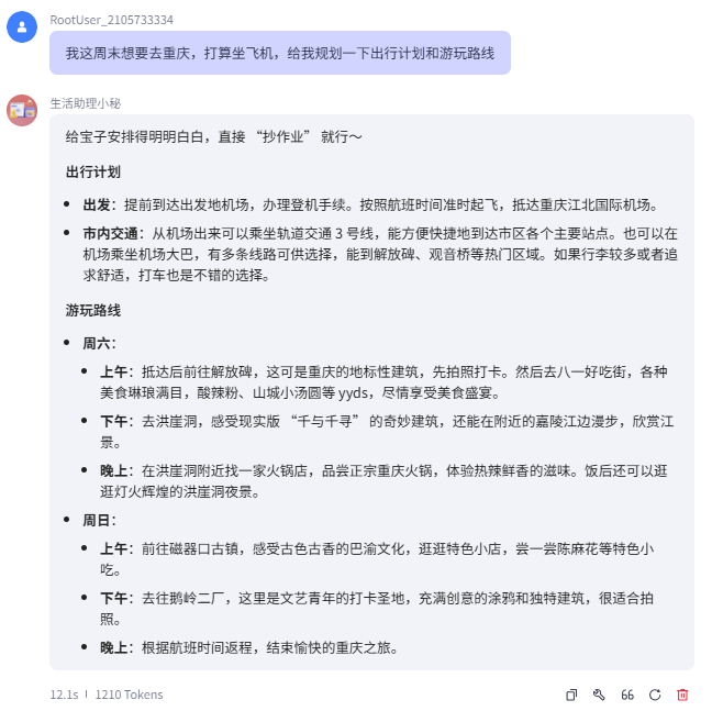 接下来我们与小秘展开对话,对智能体的配置效果进行全面测试
