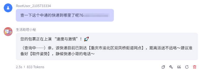 快递追踪:多次运行单号物流查询结果存在差异且与实际不符,严重影响准确性。如上述中通快递单号查询,实际已到菜鸟驿站,但智能体给出的结果有时在转运中心,有时显示已在派送中。这可能是由于数据接口不稳定或智能体内部数据处理逻辑错误。解决办法是排后续接入可靠的快递查询插件,确保物流查询的准确性。