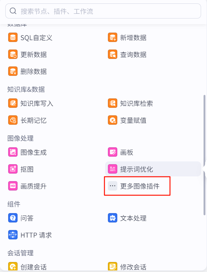 在添加节点里点击“更多图像插件”,就会跳转到插件商店展示图像处理的相关插件