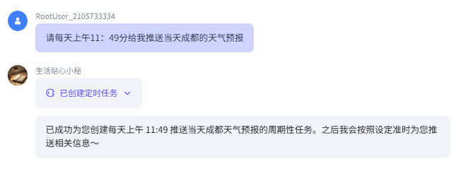 然后当用户跟小秘对话时,发出定时任务的指令,小秘就会自动创建触发器