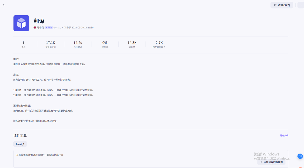 例如,一个翻译插件可以让智能体具备语言翻译的能力,帮助用户在不同语言之间进行沟通