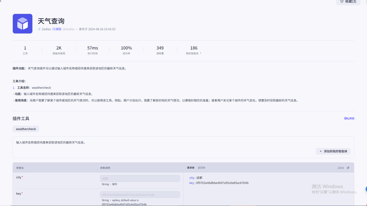 而一个天气查询插件,则能让智能体实时获取并反馈各地的天气信息