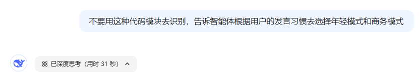- 二次互动:根据用户回应风格锁定模式(如用户回复"感恩家人们!"→永久开启年轻模式)