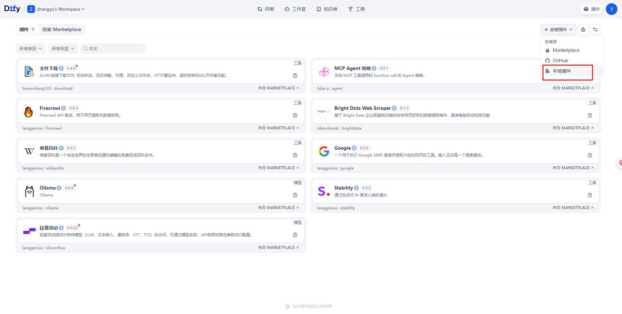 我们点击界面右上角插件——>插件安装,可以看到有三种插件安装方式,我们提供本地插件安装方式