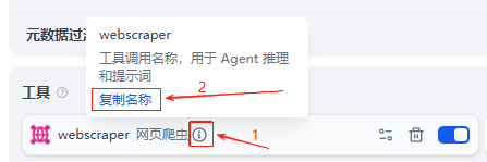 在提示词中阐述使用某某工具的时候一定要严格地写上该工具的名称,可以在这里点击一下进行复制