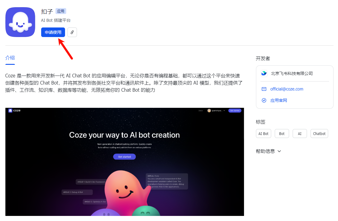 飞书授权“扣子(coze)”