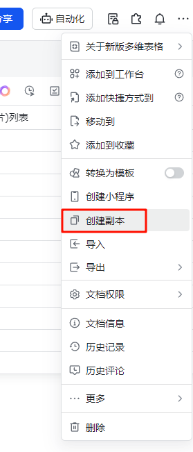 创建副本点击页面右上角的“...”,点击“创建副本”