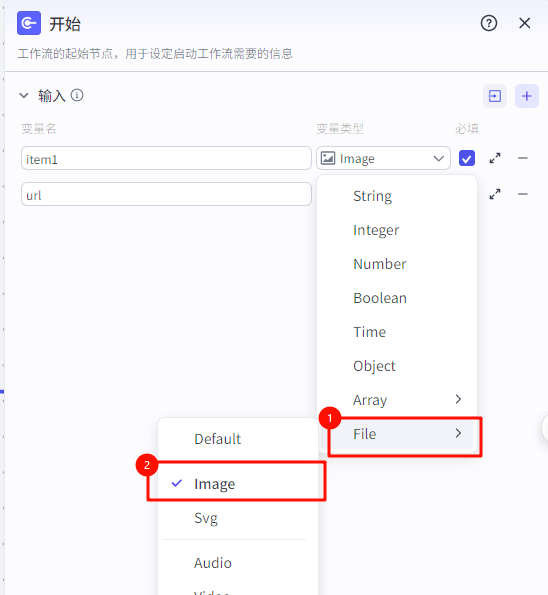 ![]() 插件具体配置如下: “url”:开始节点上传的图片
