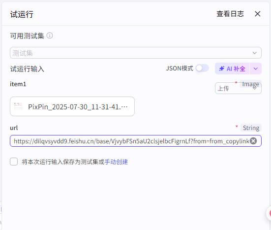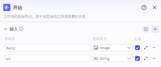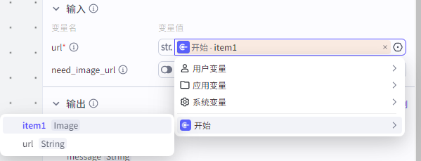 ![]() 输入有两个必填项,app_token直接选择开始节点的“url”