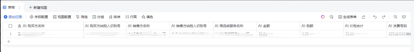 今天分享一个新的用法,通过发票图片,即可一键提取其发票内的信息提取,存储到飞书表格。