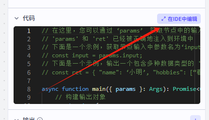 使用AI打造代码节点,我们可以用Coze内置的AI去生成,也可以用外部的大模型去生成,但是我们测试下来发现Coze编辑器内置的AI工具生成的代码很不友好,经常出错,所以不建议大家使用,接下来的侧重点也是教大家如何使用外部的大模型工具去打造代码节点