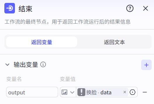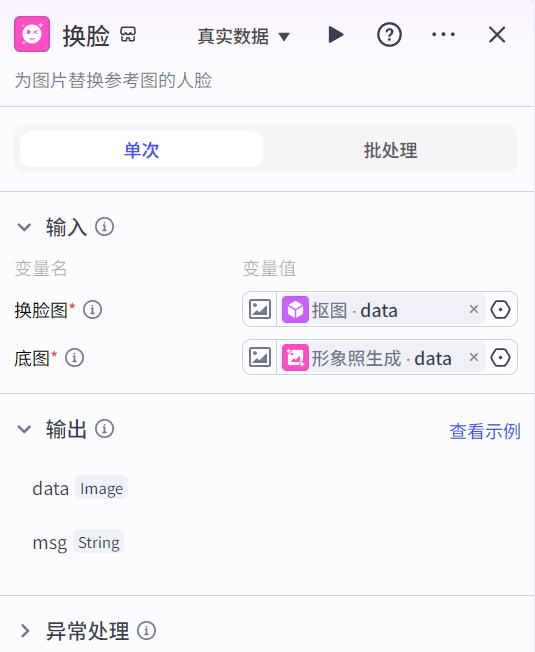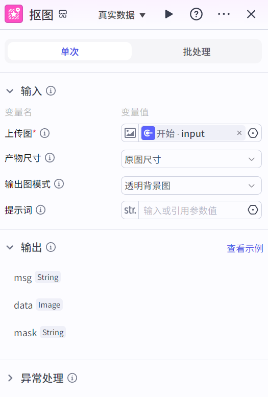 输入选择上一个抠图节点输出的image类型的变量“data”