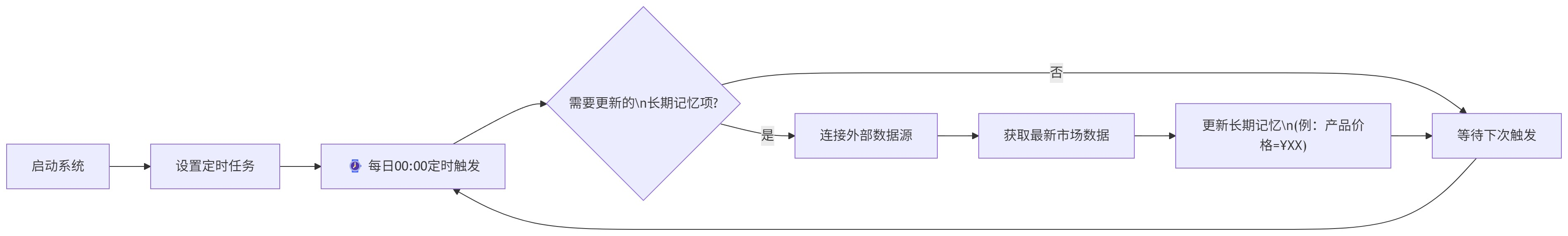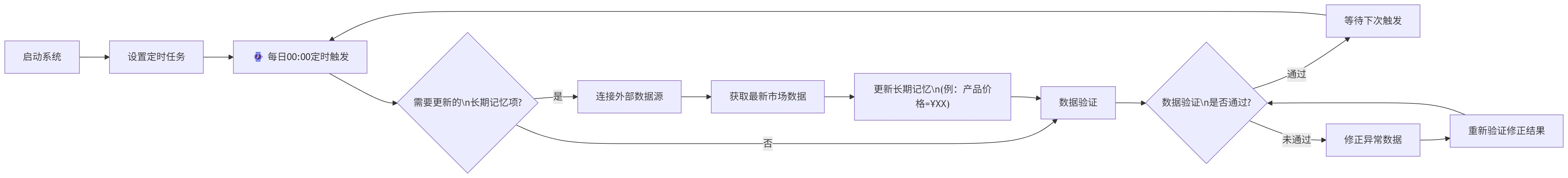 我们可以设置一个定时任务,每天晚上 12 点更新长期记忆中的产品价格变量