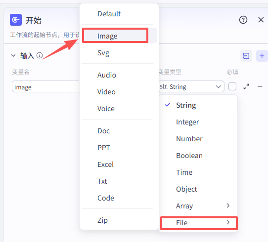 添加成功之后,组件部分会自动填好,但是默认变量为文本,所以需要更改一下image的组件类型为上传文本-图片