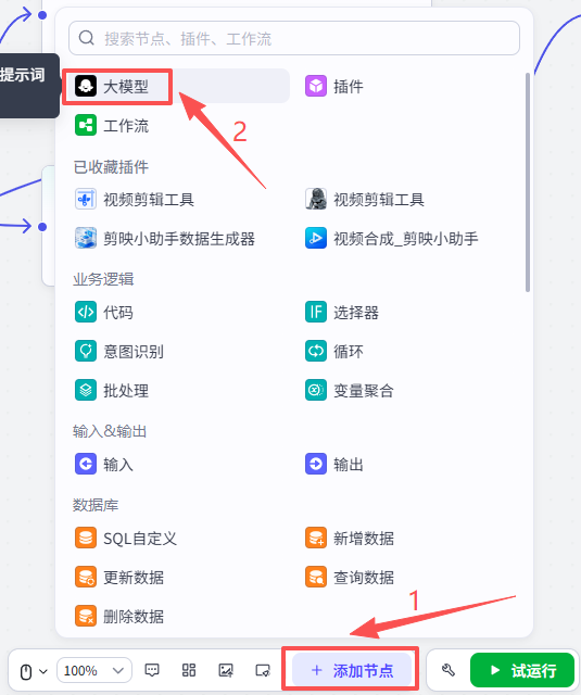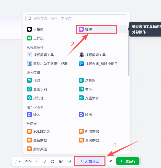 点击添加节点,选择插件