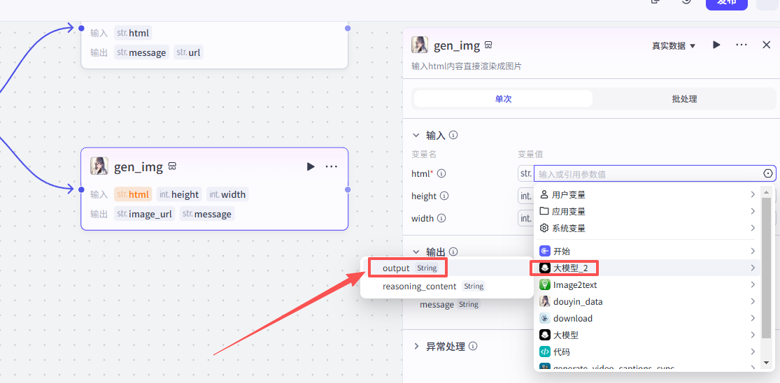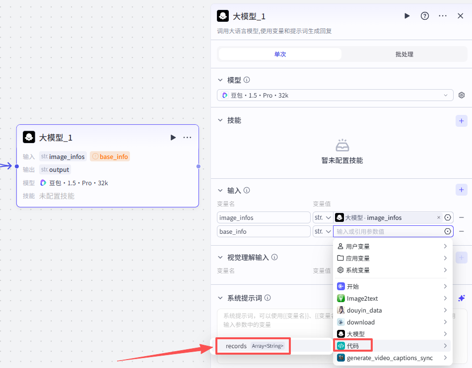 添加之后就是这样,把它和上一个大模型节点链接起来,这里需要配置一个参数