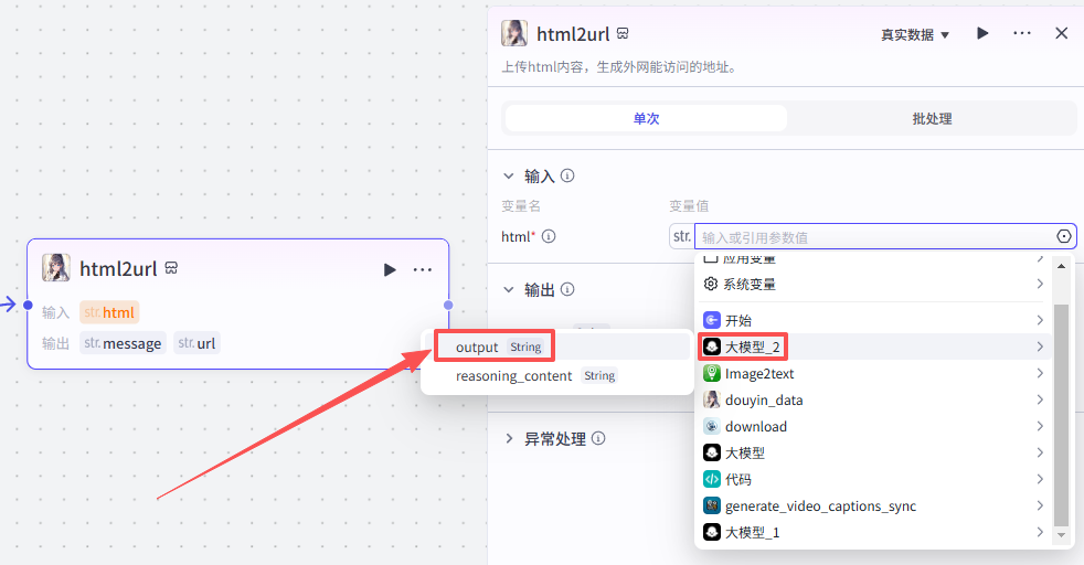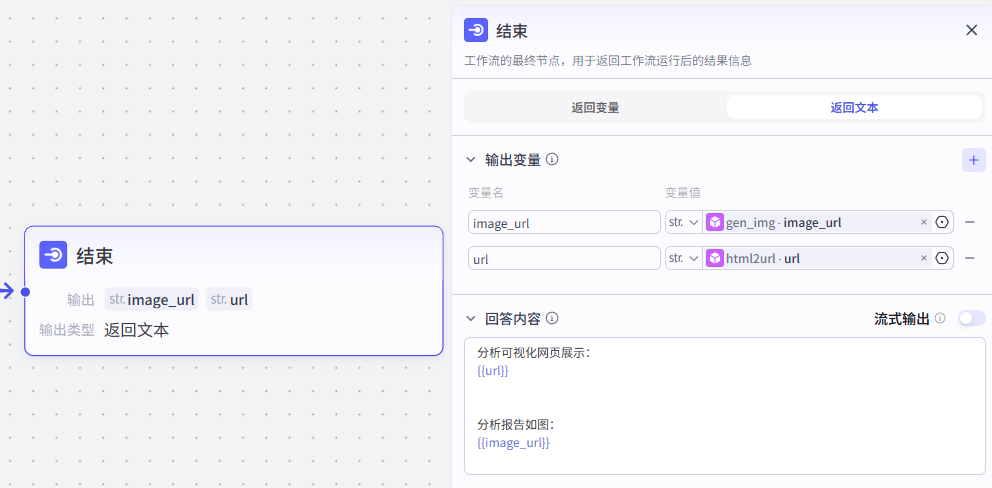 接下来,我们需要处理上一节点生成的html代码,输出为可访问的html地址和可视化分析报告图片