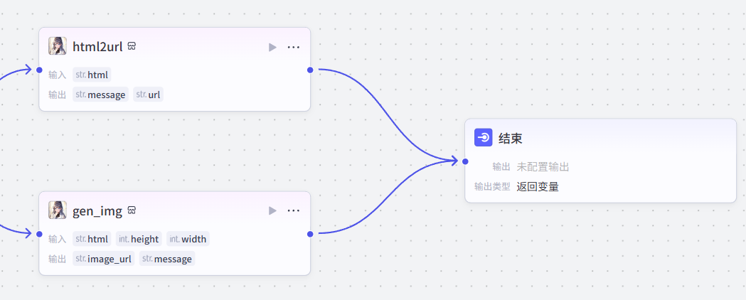 数据全部处理完毕,链接结束节点,需要分别输出前面两个节点处理后的输出
