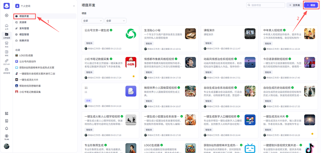 点击个人空间->项目开发->项目