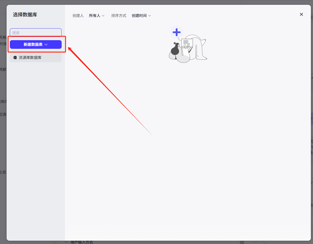 数据库的添加和引入在记忆部分,我们可以选择通过提示词(AI)辅助创建或者直接添加