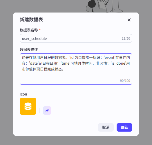 那么以记录日程为例,我们给大家讲解下如何在Coze平台建立和使用数据库