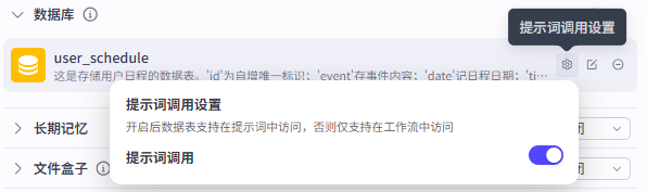 可以看到数据库右上角还有一个设置按钮,这是提示词调用设置规则