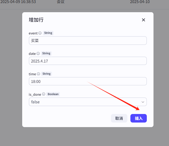 我们的is_done(日程完成状态)也可以使用字符串类型,但是布尔类型就只有两个值:“真”(True )和 “假”(False ),所以我们定义为布尔类型,方便我们去辨别日程的完成情况