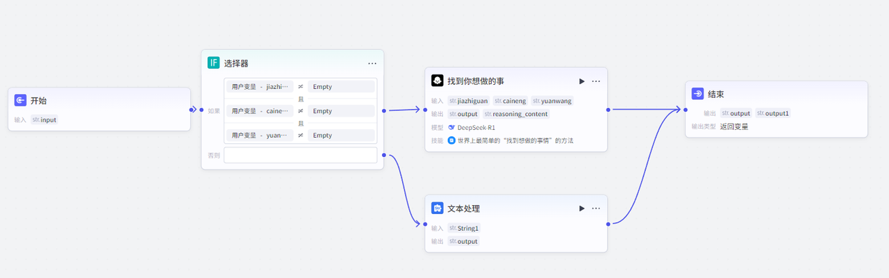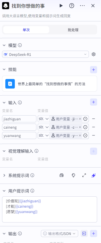 这个大模型可以配置的能力强一些,需要一些展开的内容,可以选择思考模型,比如DeepSeekR1