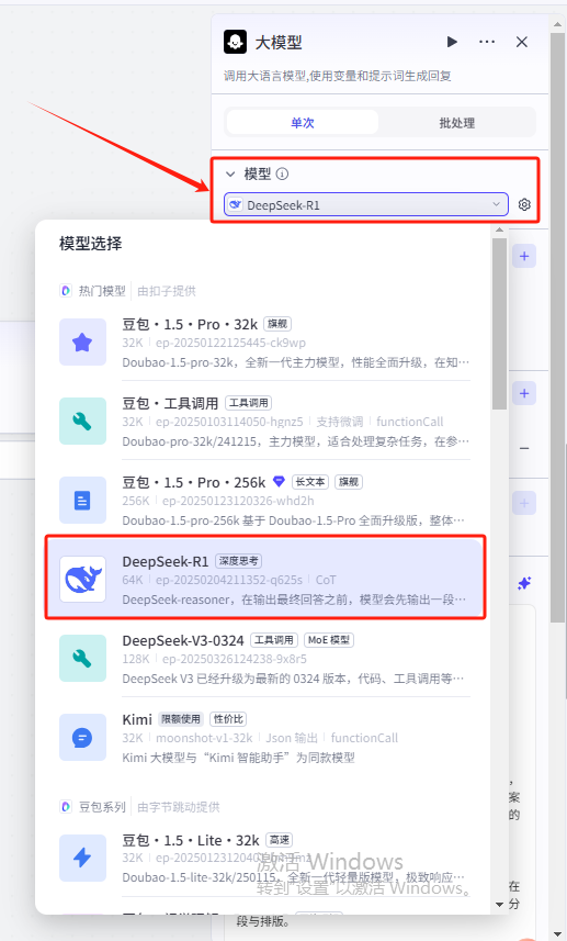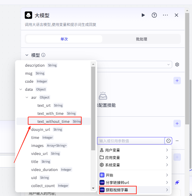 想要实现对文案的撰写,我们就需要添加一个大模型节点