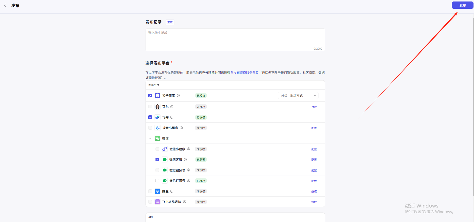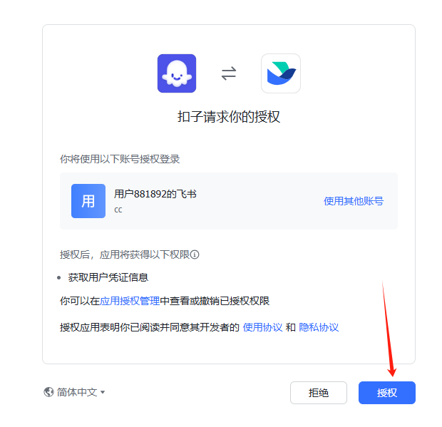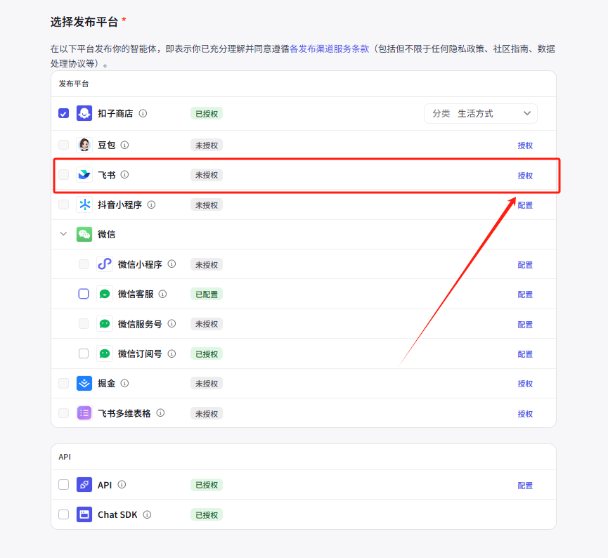 接下来是发布到飞书的教程,我们点击授权