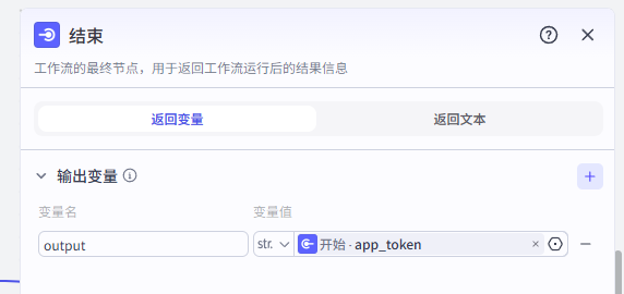 输入有两个必填项,app_token选择开始节点的填入的“app_token”
