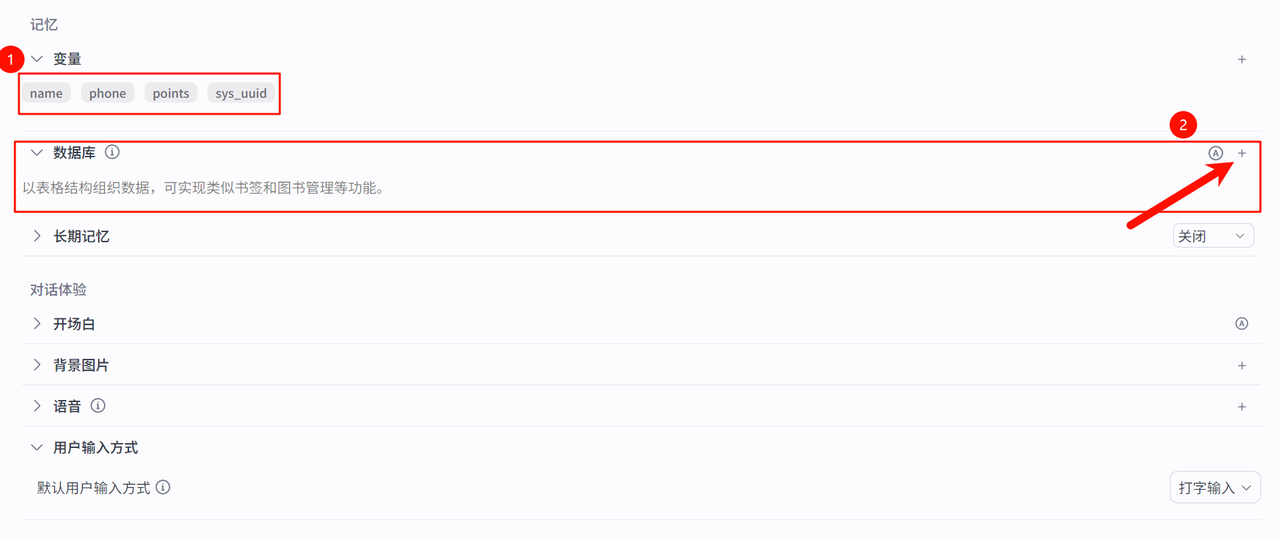 我们在输入里添加两个变量,还记得我们在创建智能体的时候添加的变量吗,这里面就用到了